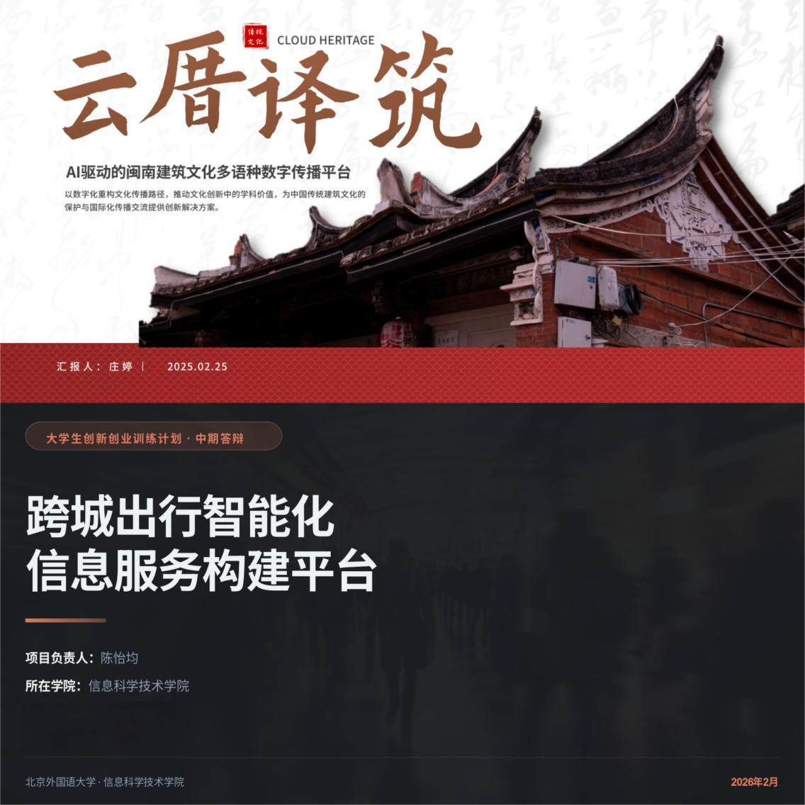 2月25日下午,太阳集团tyc9728在国际大厦812室举办大创项目中期评审会,学院党总支书记梁野、专业教师乔利强、辅导员赵韵怡担任评审。本次参与中期评审的大创项目共两项。市级项目“云厝译筑(CloudHeritage):AI驱动的闽南建筑文化多语种数字传播平台”聚焦传统文化数字化传播,贴合国家文化发展与国际人文交流相关战略,项目创新点鲜明,整体推进成效突出;校级项目“跨城出行智能化信息服务构建平台”瞄准民生出行痛点,技术落地性强,...