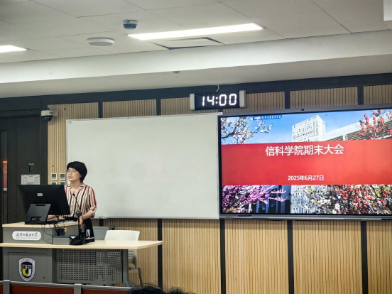 6月27日下午,信科学院2025年春季学期期末大会在国际大厦409教室召开,党总支副书记刘玉华和辅导员赵韵怡出席,全体学生参加。会议伊始,刘玉华老师对本学期的学生工作进行了系统回顾总结。思想引领方面,以“青春力量在行动”之“铸魂计划”为主线,开展了系列主题教育活动,推动理想信念教育融入日常,浸润、感染和熏陶学生;党团建设方面,学院党团组织蓬勃发展,活动丰富多彩。学生会顺利完成换届工作,并新增设生活权益部,进一步提升服务学生的能力;...