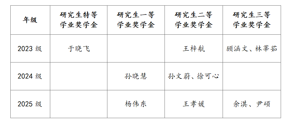 根据《北京外国语大学学生资助工作管理规定》、《北京外国语大学研究生学业奖学金评审办法(试行)》、《北京外国语大学研究生学业奖学金评审指标体系(实行)》,结合统考生评审指标及办法,经学生个人申报、班级推荐审核、团总支学生会汇总、学院评奖评优工作领导小组审定,学院2024—2025年度研究生学业奖学金评审结果如下(排名不分先后):