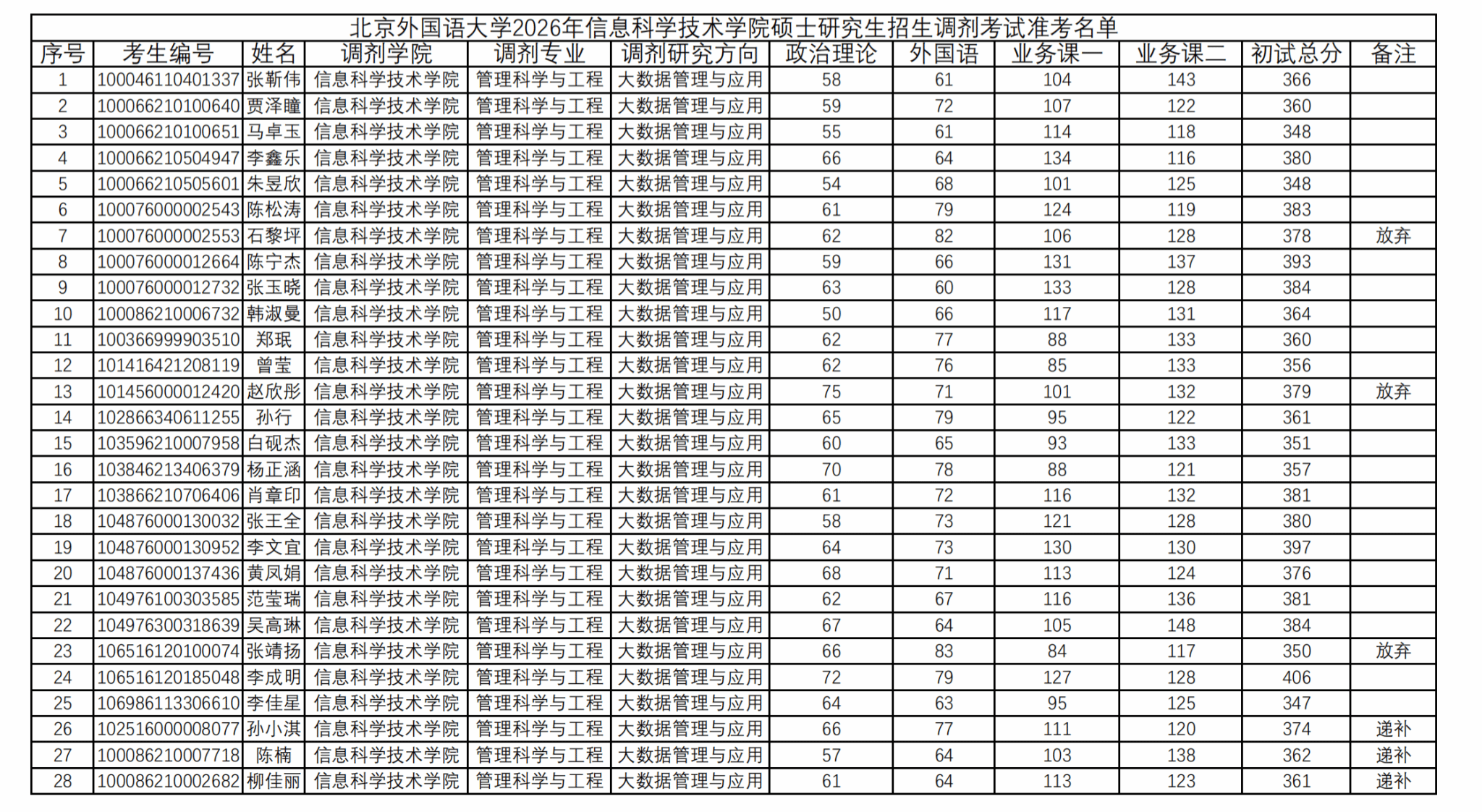 2026年太阳集团tyc9728硕士研究生招生调剂考试准考名单